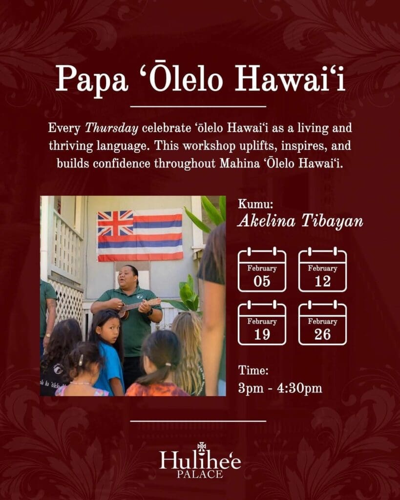 Every Thursday celebrate ʻōlelo Hawaiʻi as a living and thriving language. This workshop uplifts, inspires, and builds confidence throughout Mahina ʻŌlelo Hawaiʻi.