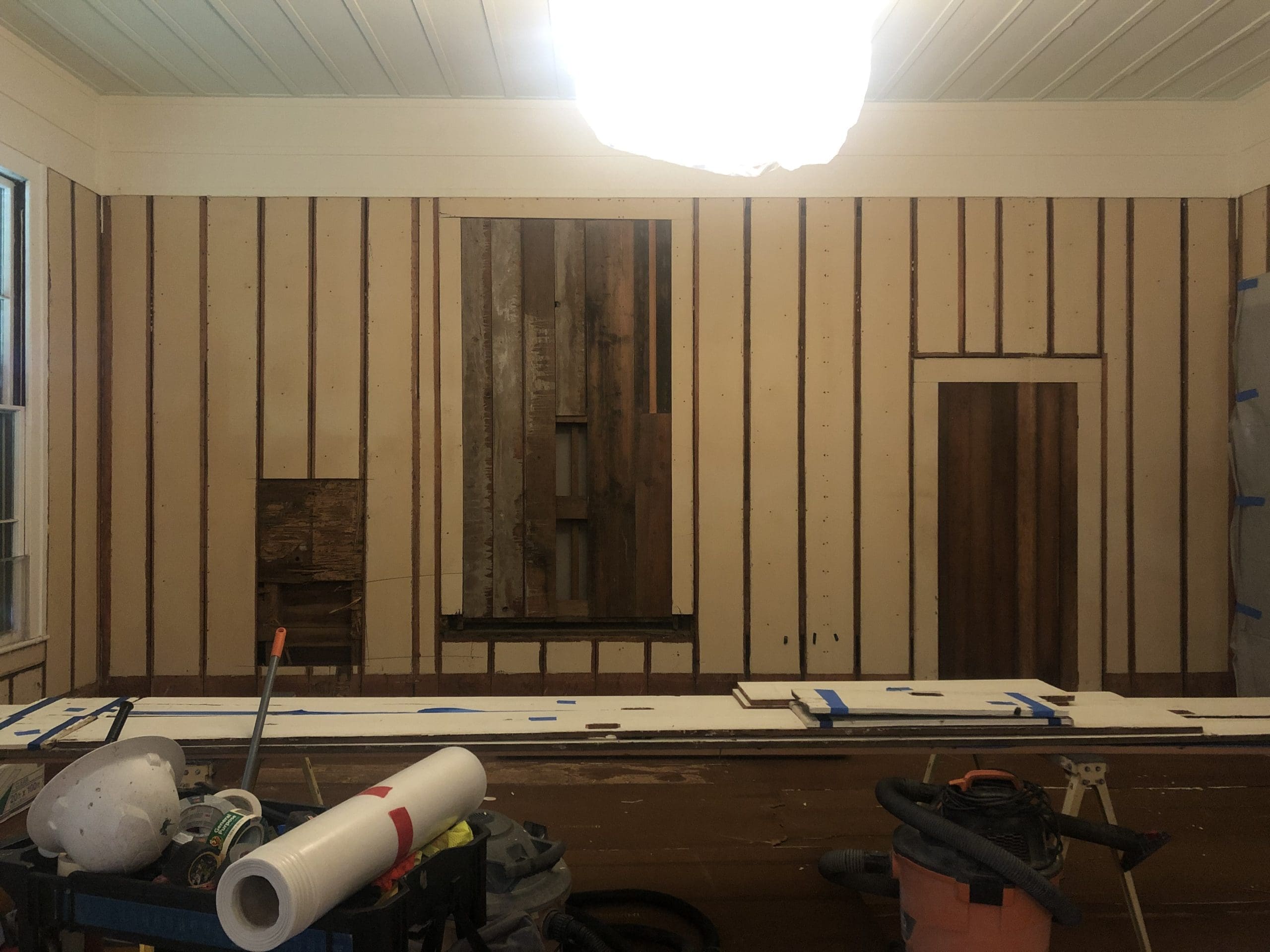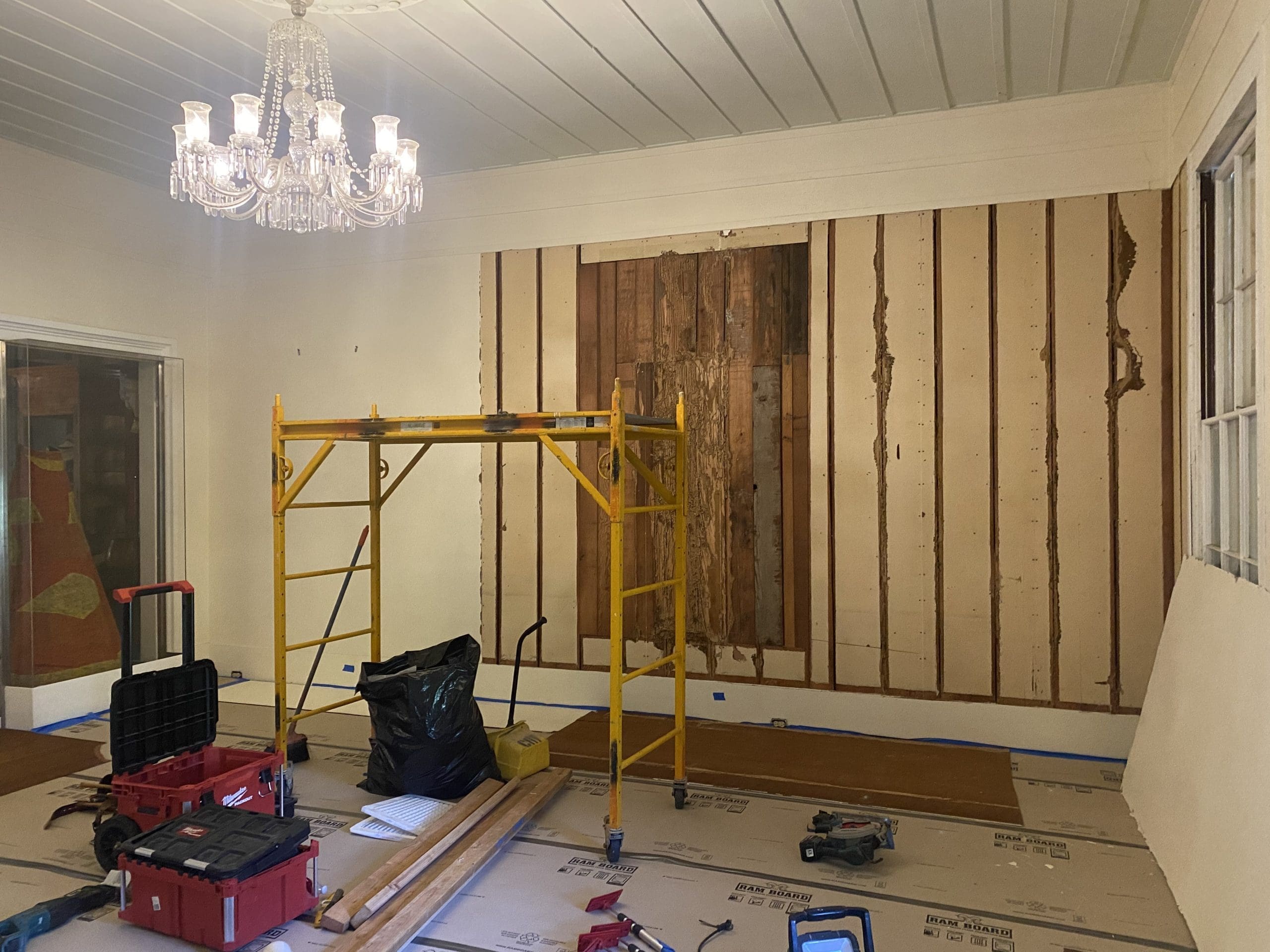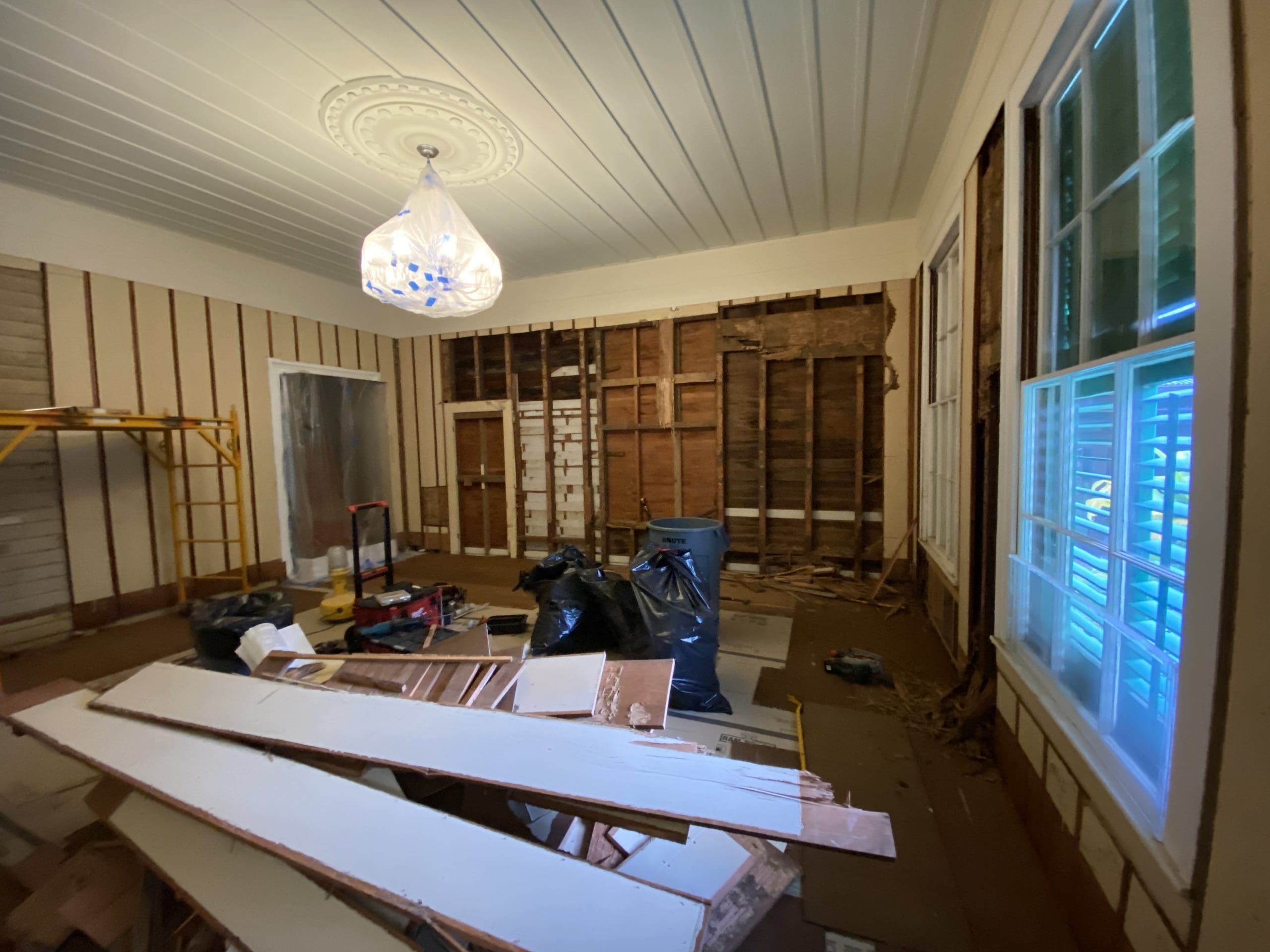 One week into the restoration project and demolition work has already revealed some exciting discoveries! We’ve uncovered long forgotten windows and doors! For years, the skeletal frame of the old doors were hidden within the walls of the Edinburgh Room. The floor-to-ceiling windows surely allowed for ample sunlight in the room, while also filling the room with the cool, crisp breeze of upland Nu‘uanu.