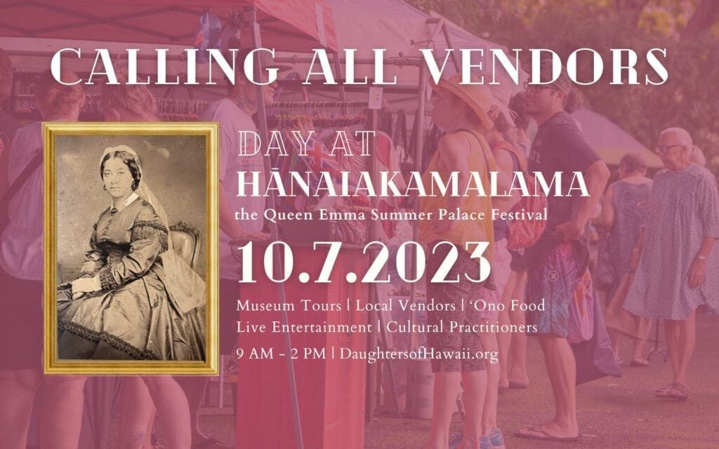 Vendors must promote the Day at Hānaiakamalama, the Queen Emma Summer Palace Festival on their social pages/websites and invite their local friends and followers to the festival.